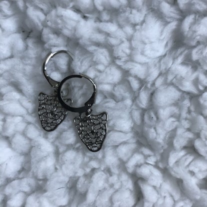 Zilvere pantertag oorbellen