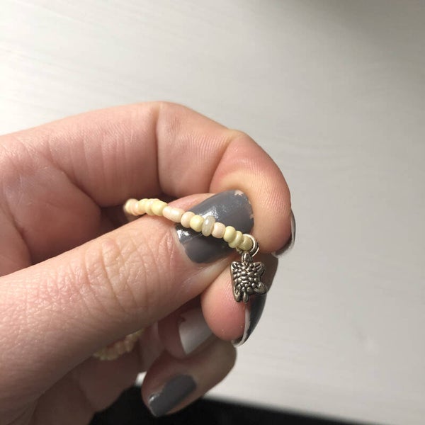 Zalm roze, geel elastisch armbandje met schildpadje